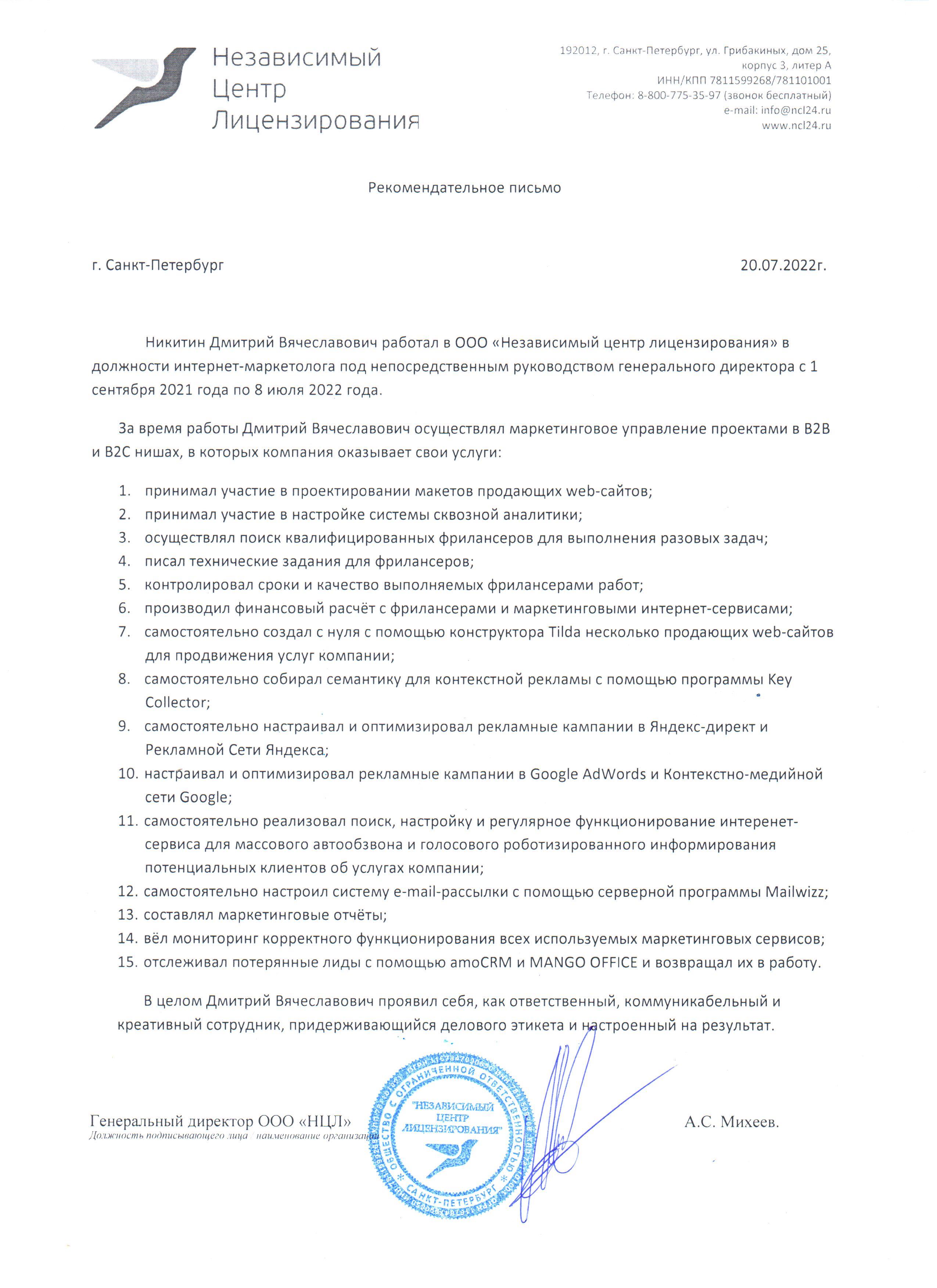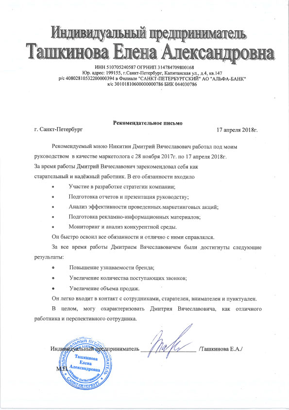 Самозанятый Никитин Д. В. ИНН 780414881850